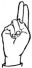 На ћирилици написано АНДРЕЈА ЛУДОШКИ састоји се из 14 слова [?]. Исписано ћириличном једноручном азбуком за глувонеме: